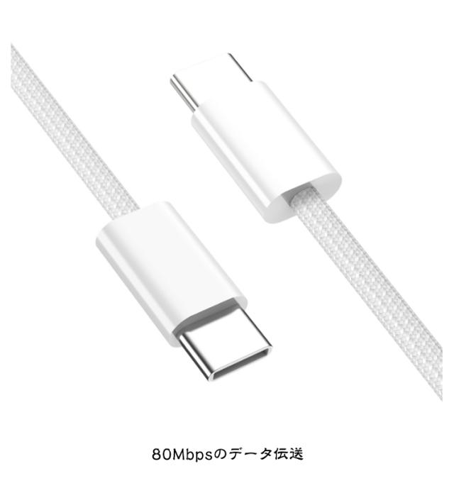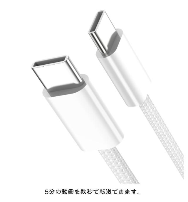 | PD iPhone15対応 最大60W 強靭ケーブル USB-CtoUSB-Cについて 80Mbpsのデータ伝送 5分の動画を数秒で転送できます。 | |