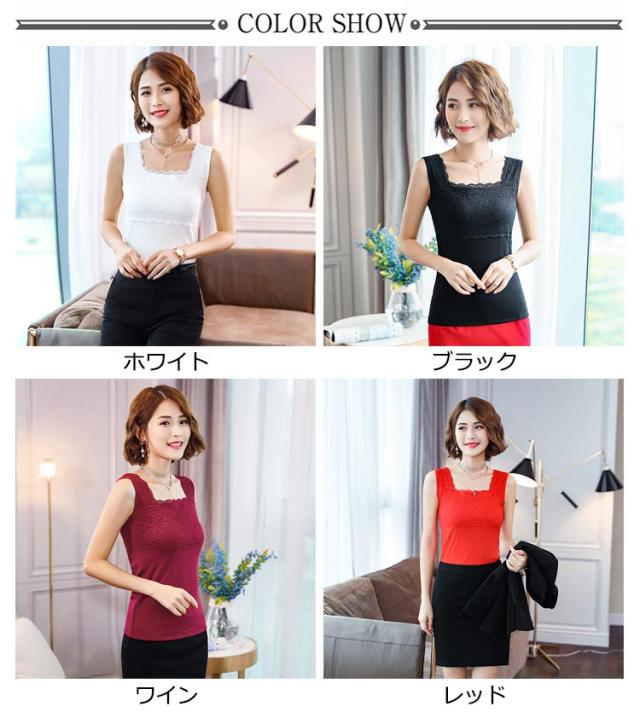 キャミソール レース 裏起毛 ブラ紐隠しインナー タンクトップ 重ね着 レイヤード タンク スクエアネック 見せる下着 カットソー 薄手 選べる2タイプ 肌着 下着 カットソー ノースリーブ 大人 無地 秋 冬