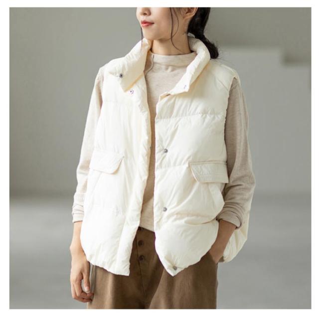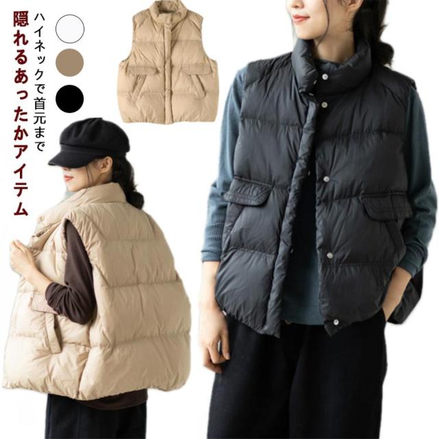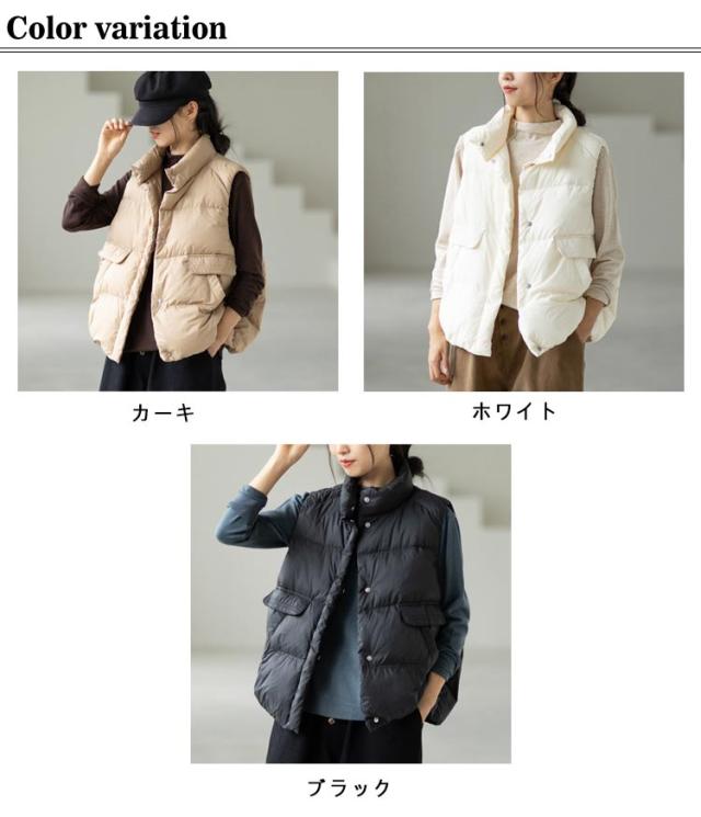 レディース フェイク ベスト レディース 防寒 アウター 秋 秋冬 おしゃれ かわいい スタンド もこもこ ダウン フードなし ダウンベスト ジャケット カーキ ストリート ブラック ダウンベスト ホワイト カジュアル 大きいサイズ 冬