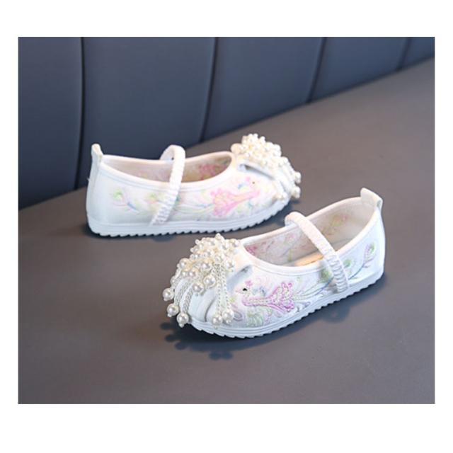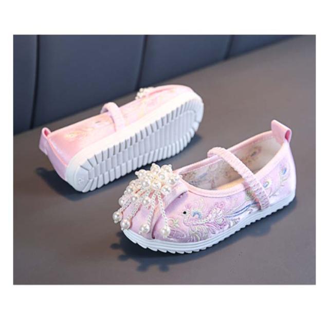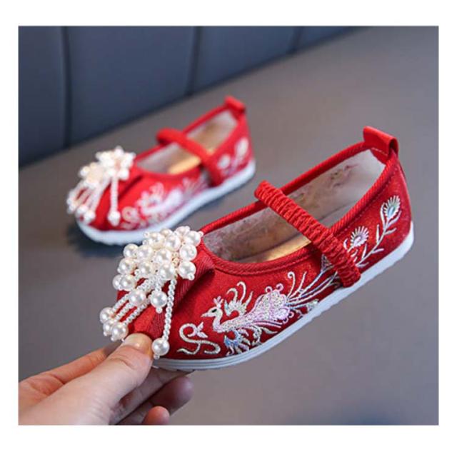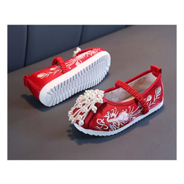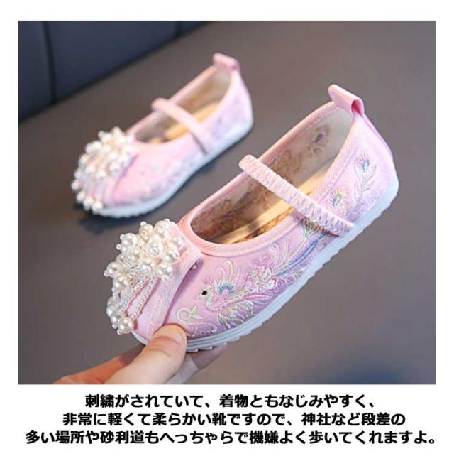 痛くない ぺたんこ 子供用 レッド パール付き 和柄 楽ちん靴 草履のかわりに履ける キッズ 刺繍 女の子 ピンク 和装 赤 歩きやすい 着物 七五三