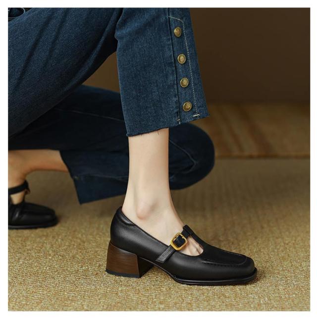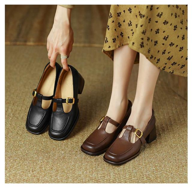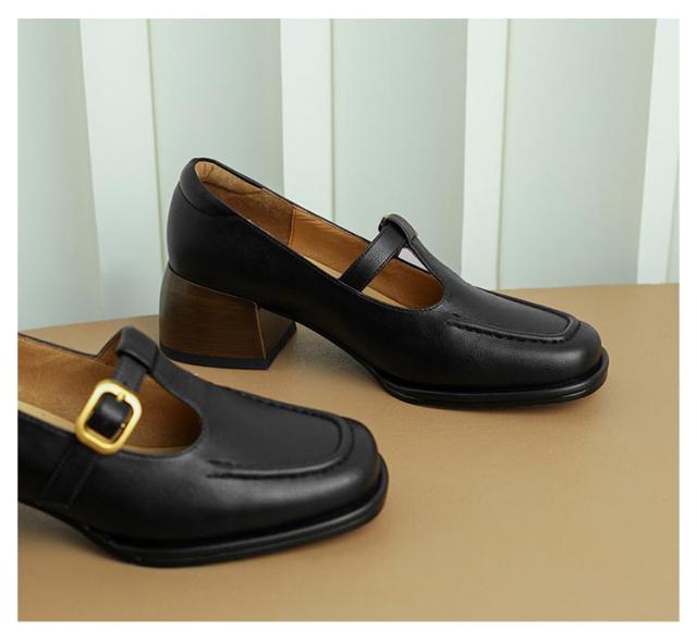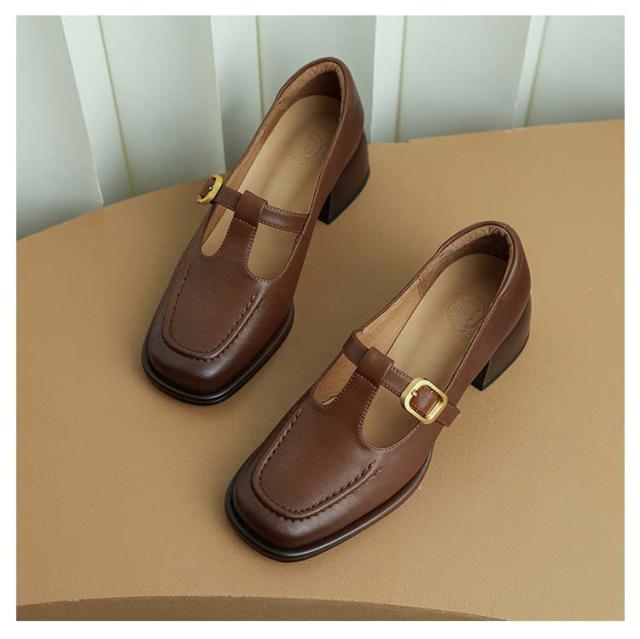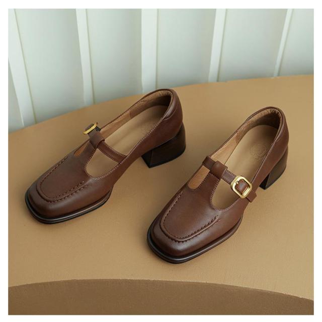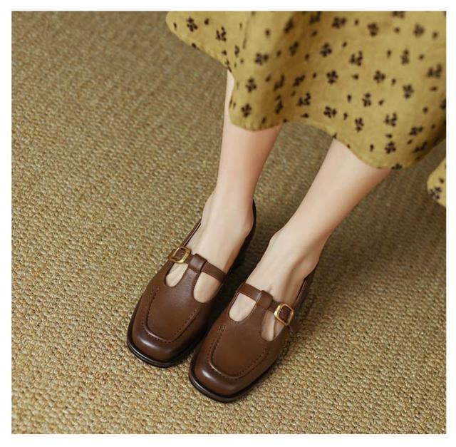 ローファー Tストラップ 太ヒール 4.5cm スクエアトゥ 痛くない レディース パンプス 茶色 黒 歩きやすい 走れる ローヒール カジュアルシューズ フォーマル 低反発 脱げる 楽 通勤 オフィス トレロ 可愛い