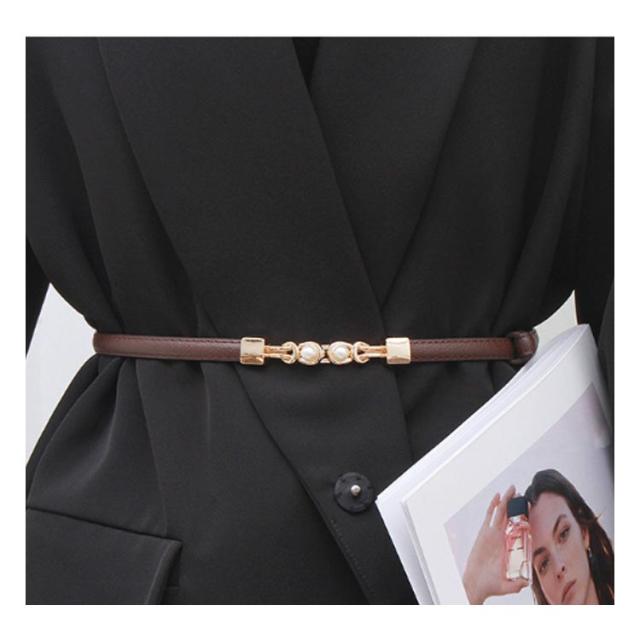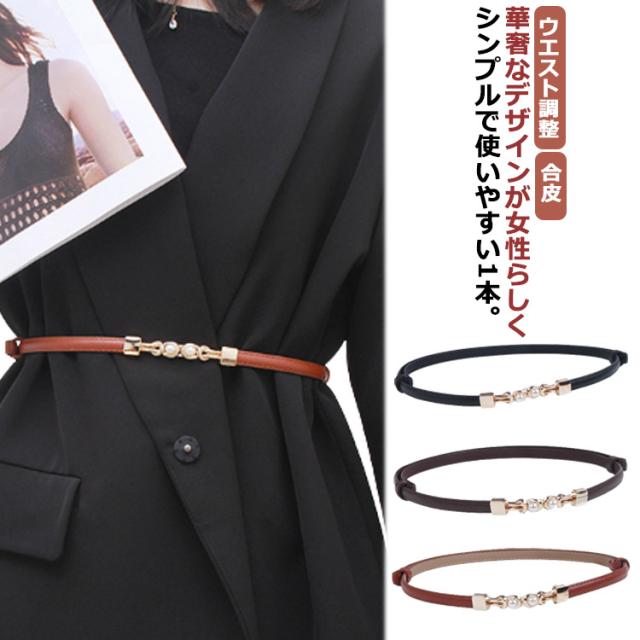 細ベルト ワンピース 細ベルト ベルト おしゃれ パーティー ドレス 細ベルト ウエストマーク レディース ビジネス ジーンズ レザー ウエスト調整 革 シンプル 母の日 パール付き