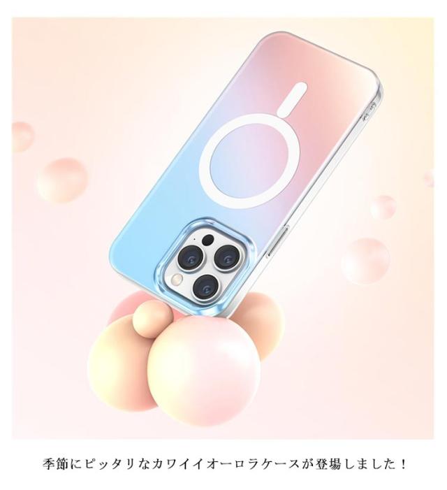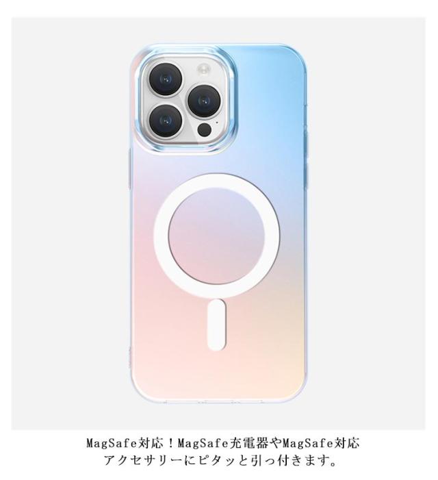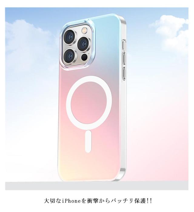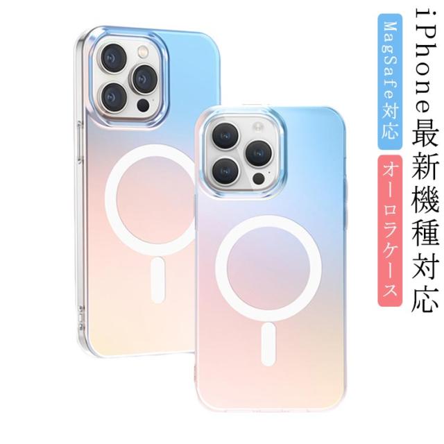 グラデーション スマホケース オーロラ iPhoneケース iPhone15 ケース MagSafe ケース スマホケース MagSafe対応 オーロラケース 磁気充電 ワイヤレス充電 耐衝撃