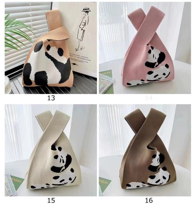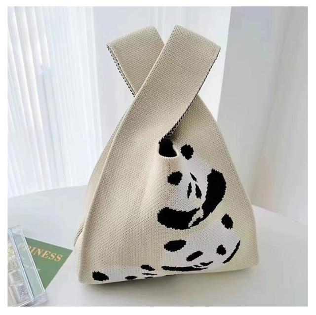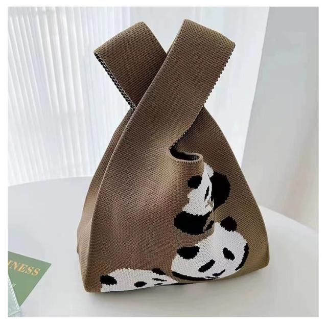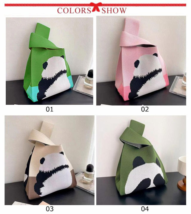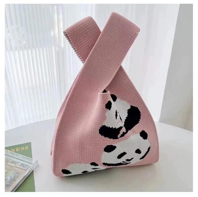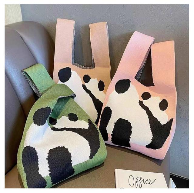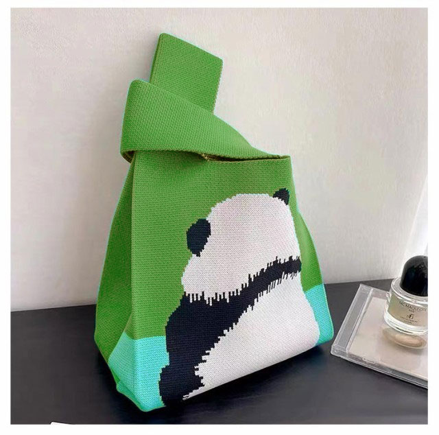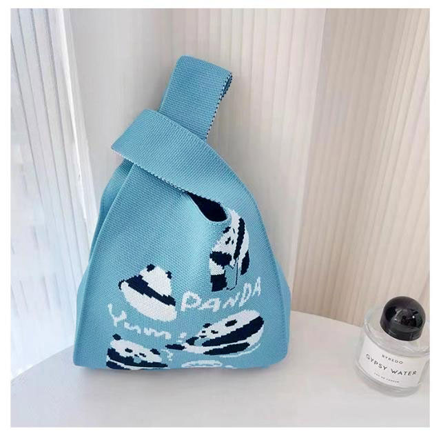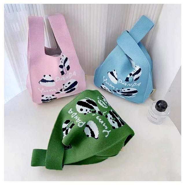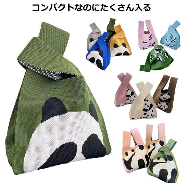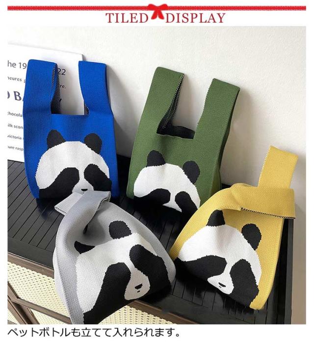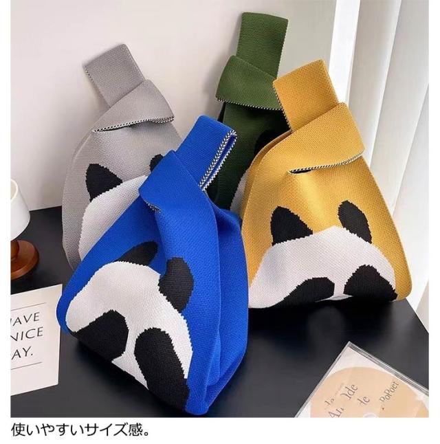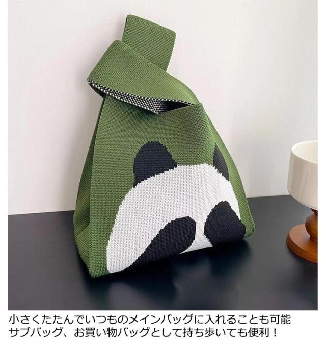 おしゃれ パンダデザイン ニットバッグ ミニトート バッグ レディース 鞄 ミニバッグ トートバッグ かばん トート 小さめ エコバッグ お弁当 ニット サブバッグ お洒落 マルシェバック エコバック ミニバック パンダ柄 マルシェバッグ