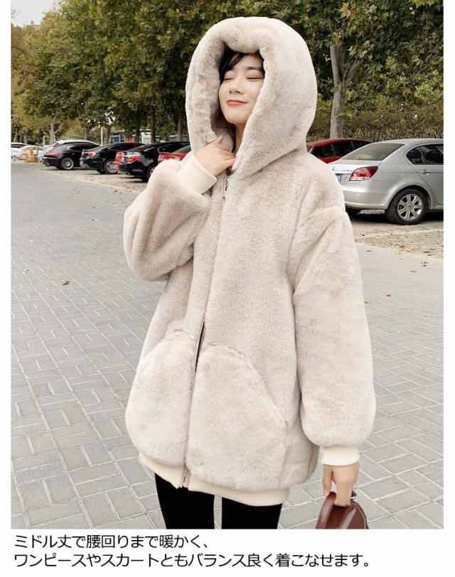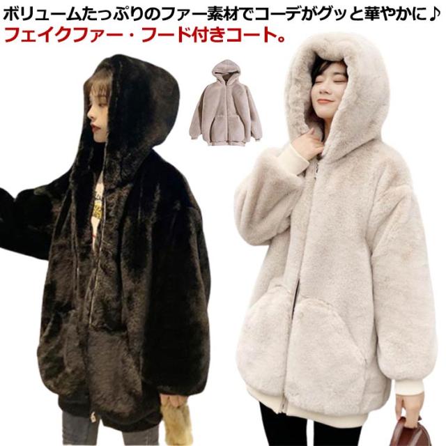 フェイクファーコート レディース ボアコート エコファー コート ジャケット フード パーカー ファージャケット ボアブルゾン ボアジャケット ジップパーカー 防寒 秋 冬 ふわふわ もこもこ 暖かい あったか おしゃれ シンプル 大人 かわいい