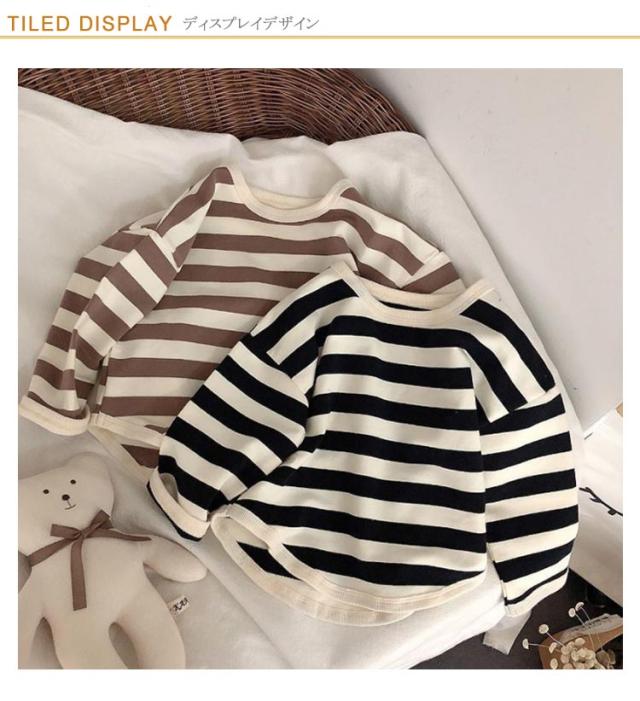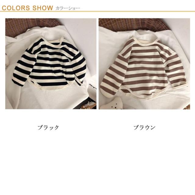 ボーダー カットソー コットン 綿 キッズ 長袖 Tシャツ 男の子 女の子 子供服 ベビー服 太ボーダー おしゃれ オシャレ 可愛い かわいい 80cm 90cm 100cm 110cm 120cm 130cm 140cm 送料無料