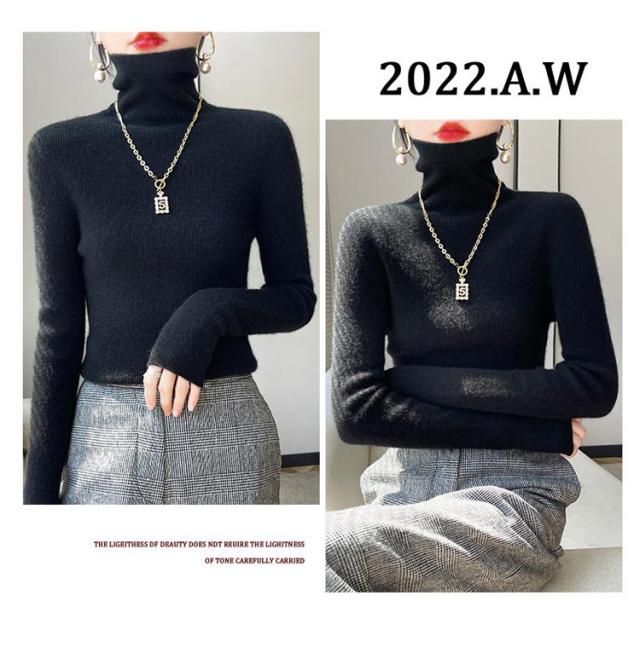 全19色!ニットトップス レディース 秋冬 セーター ハイネック 重ね着 インナー リブニット 起毛 ふわふわ タートル コーデ レイヤード シンプル きれいめ カラフル カジュアル ストレッチ 冷え取り 春 秋 冬
