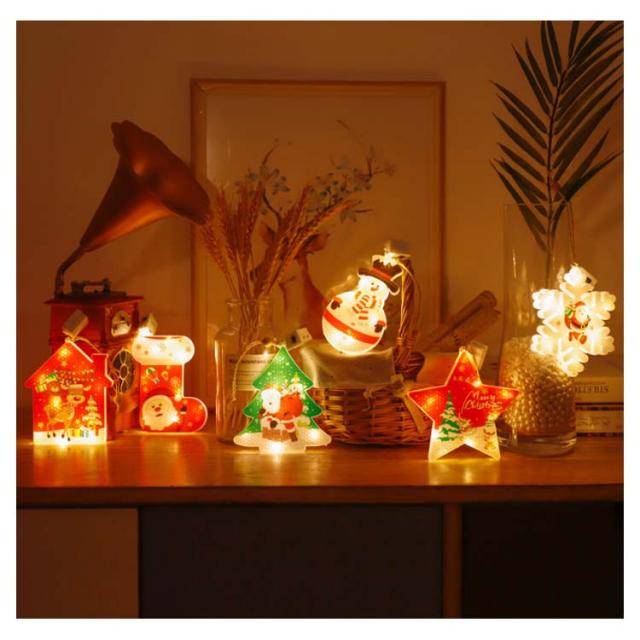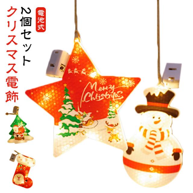 2個セット クリスマス 電飾 LED オーナメント クリスマスツリー クリスマス 飾り 光る オーナメント LED ライト イルミネーション ライト 電池式 デコレーション 照明 雪だるま 靴下 雪の結晶 星 サンタ クリスマスライト ショップウィンドウ 壁飾り 玄関 ドア 送料無料