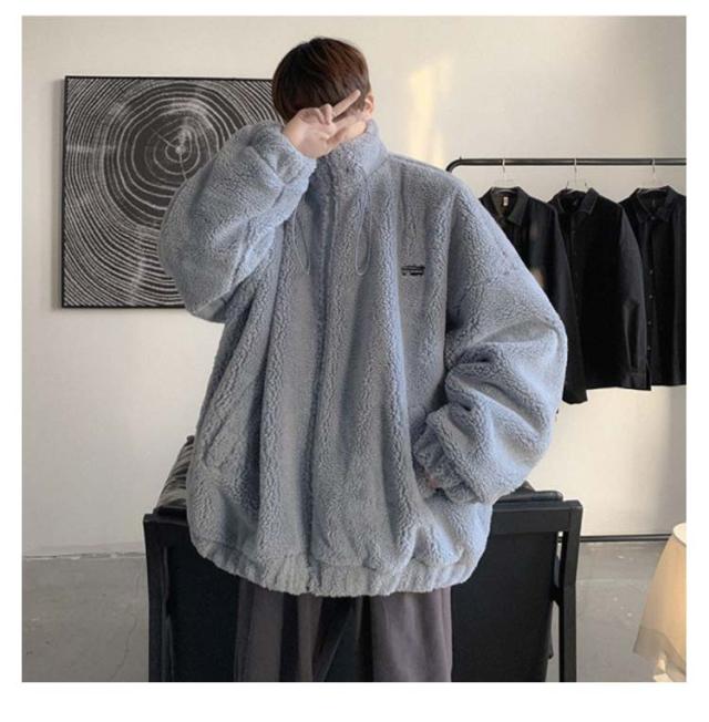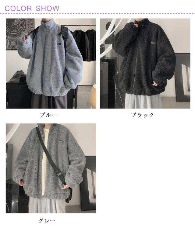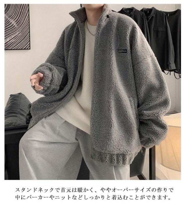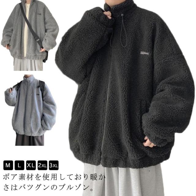 ボア ジャケット メンズ ボアブルゾン ボアジャケット スタンドカラー ジップ ジャケット ジャンパー アウター ブルゾン ボアブルゾン ボアコート フリースジャケット 秋 冬 暖かい 厚手 ゆったり オーバーサイズ おしゃれ 韓国