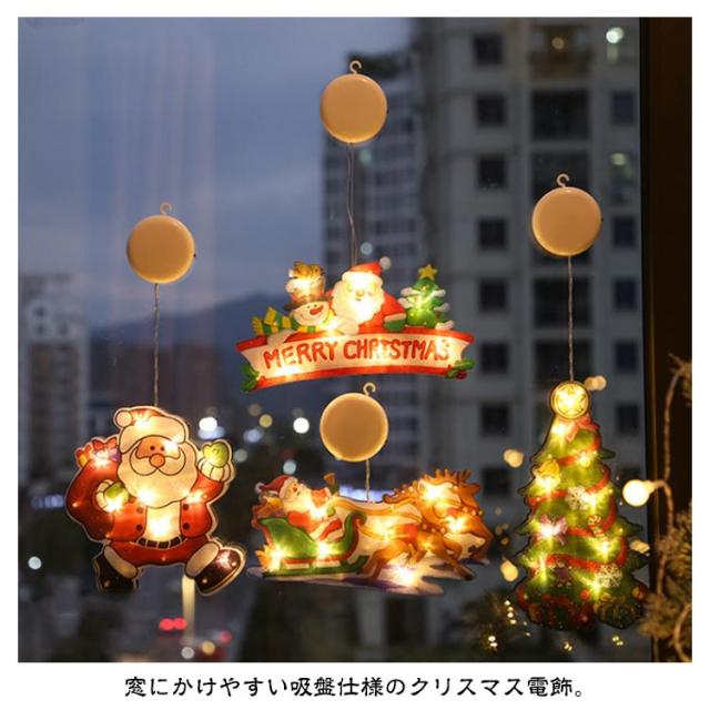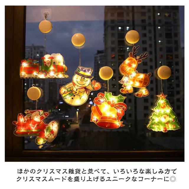 6個セット LED ライト クリスマス 飾り 光る イルミネーション ライト 電池式 クリスマス 電飾 LED オーナメント 吸盤 クリスマスツリー デコレーション 照明 トナカイ 雪だるま サンタ 鈴 クリスマスライト ストリングライト 送料無料