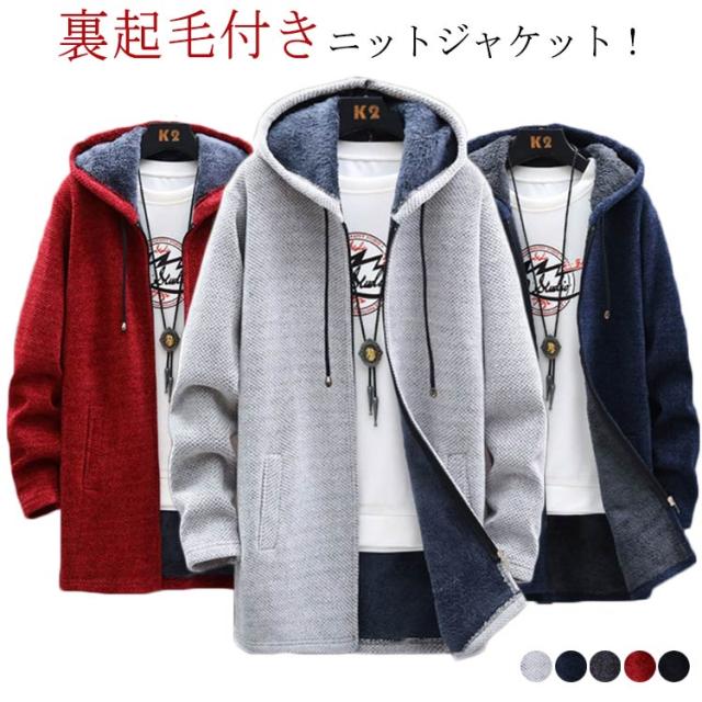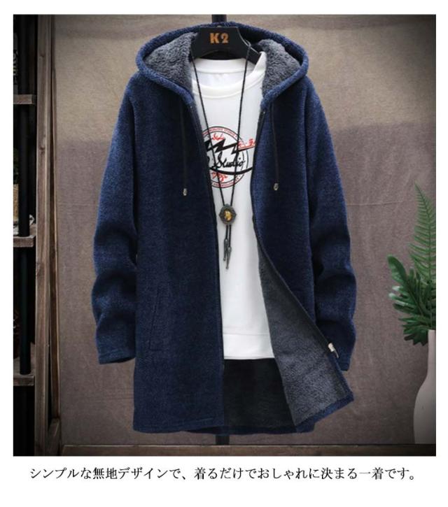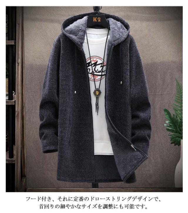 ロングパーカー メンズ ジャケット メンズ 秋冬 ニットジャケット ロングジャケット ジャージ ジップアップパーカー フードパーカー ロング丈 アウター 暖かい 韓国ファッション M L XL 2XL 3XL 4XL