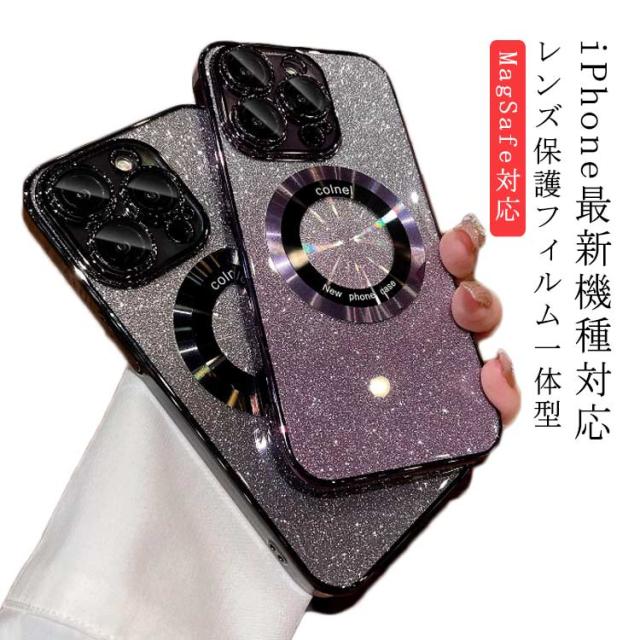 メッキ加工 グラデーション スマホケース レンズ保護 フィルム一体型 iPhone15Pro iPhone15ProMax iPhone15Plus ケース MagSafe対応 オーロラ iPhoneケース iPhone15