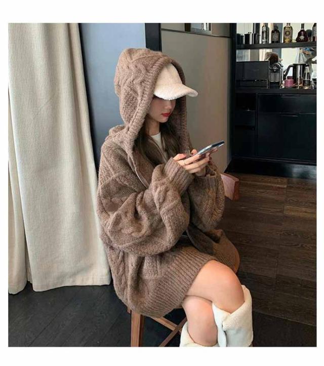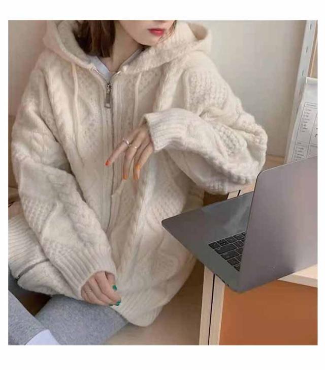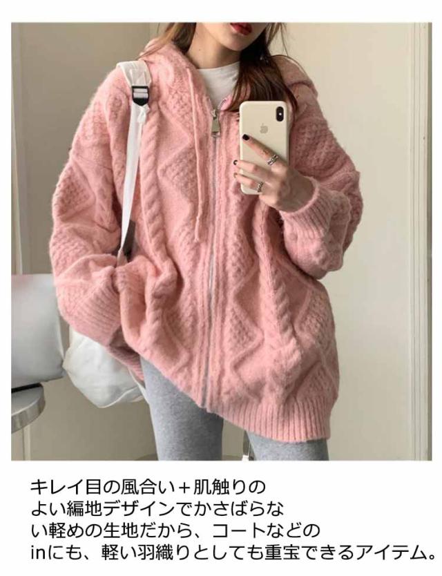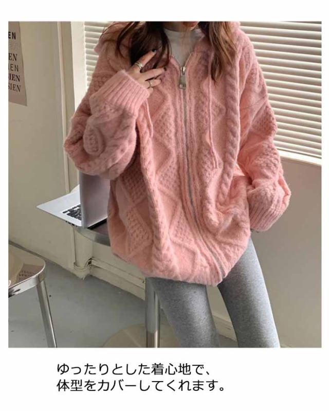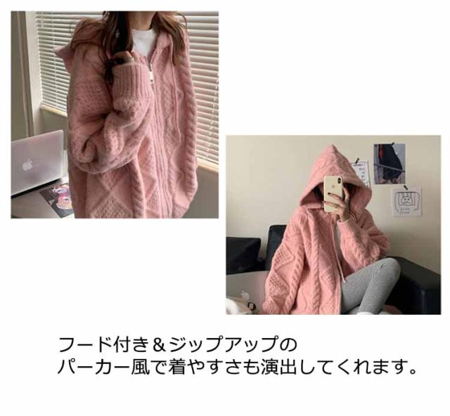 ケーブルニットカーディガン ニットカーディガン カーディガン レディース 厚手 フード付き ニットパーカー ジップアップ ケーブル編み ニットコート ざっくり ゆったり 長袖 パーカー ニット