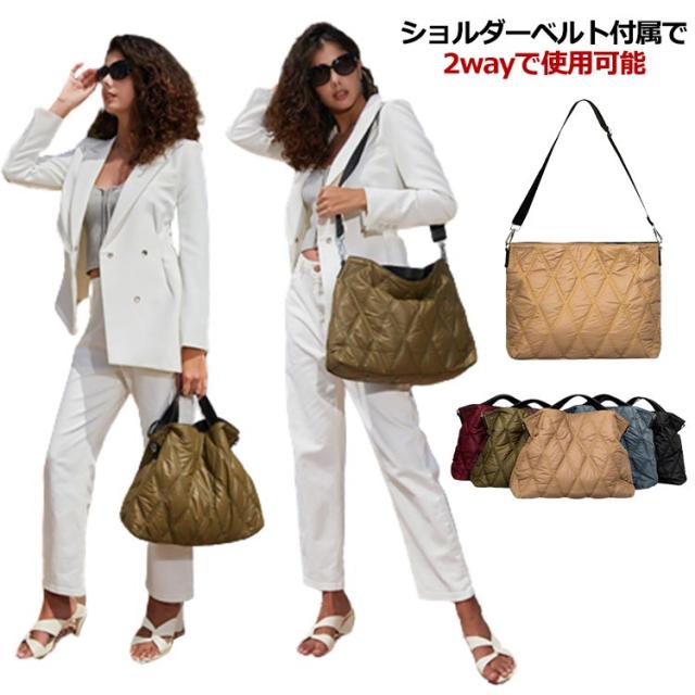 2way トートバッグ レディース ナイロン キルティング ショルダーバッグ 超軽量 軽い 大きめ かわいい おしゃれ A4 PC パソコン 入る バッグ マザーズバッグ メッセンジャーバッグ クロスボディ 旅行 シンプル 秋 冬 プレゼント ギフト 送料無料