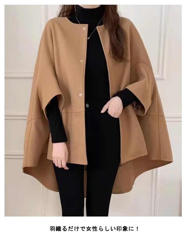 コート マント レディース ポンチョ ポンチョコート 秋 冬 秋冬 アウター ケープ ケープ風 ケープジャケット ケープコート マントコート 羽織 ジャケット チェスターコート 着痩せ 無地 体型カバー OL 通勤 暖かい きれいめ 上品