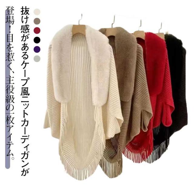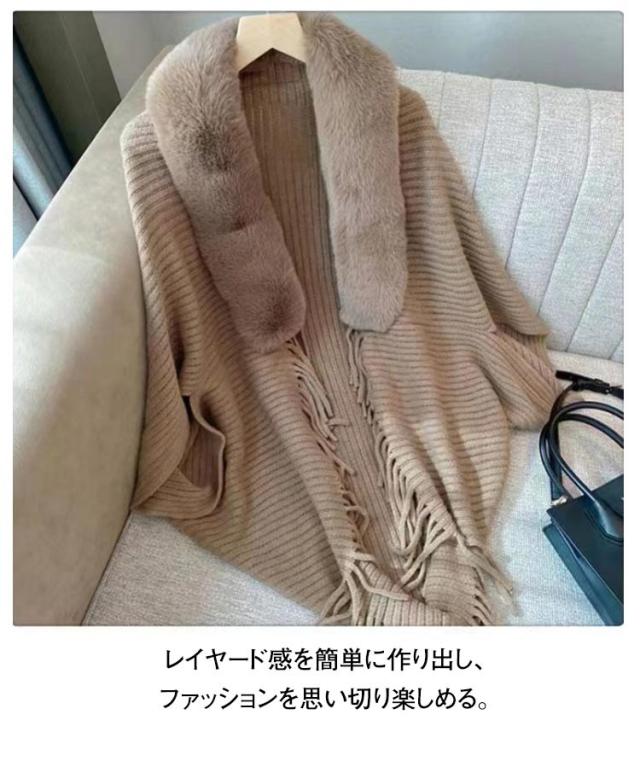 ファーショール ドルマンカーディガン 羽織り ニット ドルマン カーディガン ボレロ ファーケープ ゆったり ニットカーデ トップス 肩掛け ショール風 レディース ポンチョ ドルマンスリーブ 秋 冬 羽織もの 無地 ふわふわ 着るストール