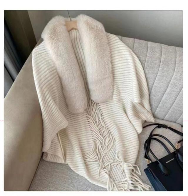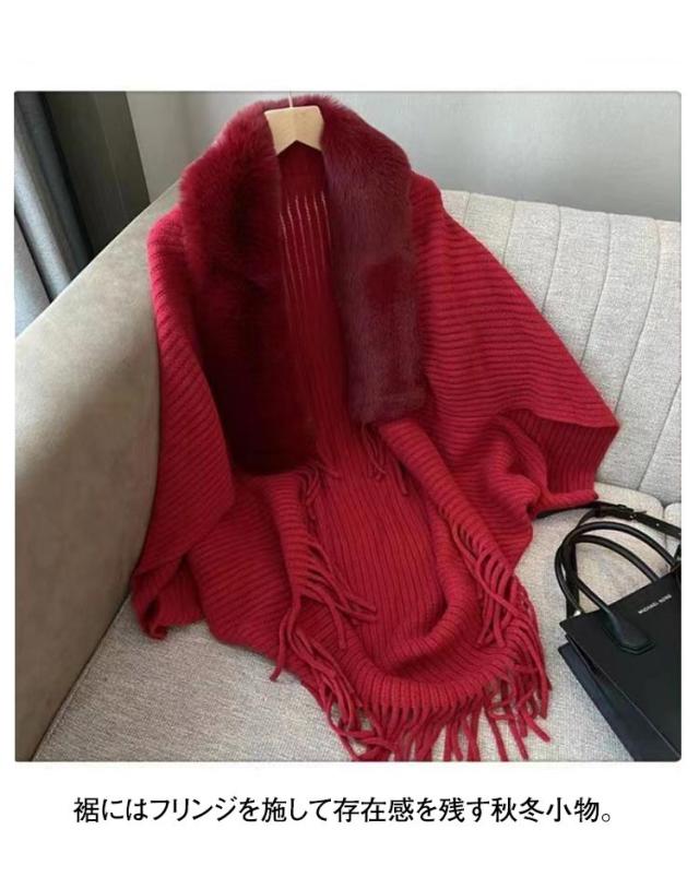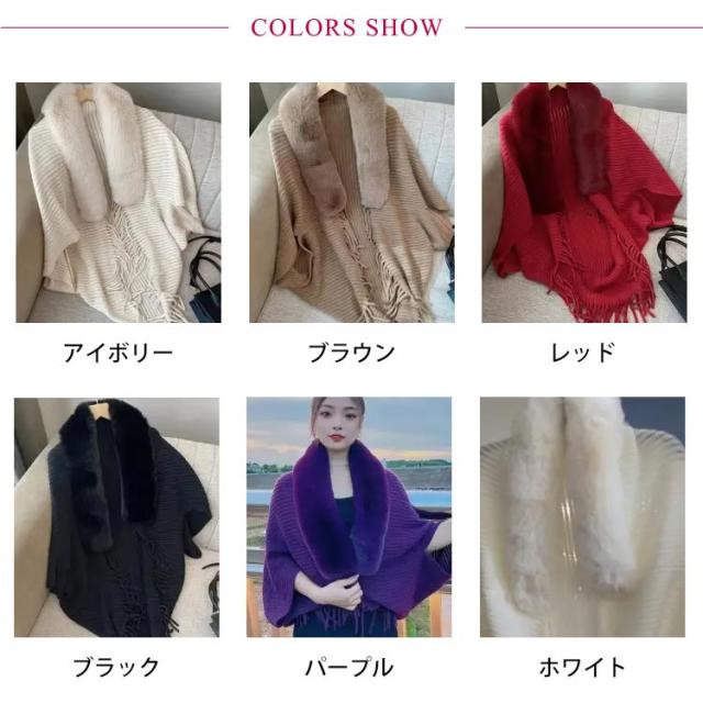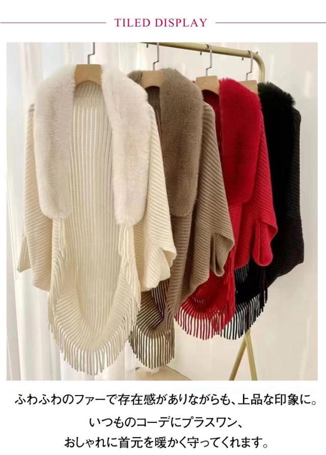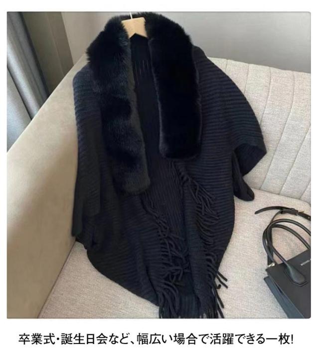 | 抜け感があるケープ風ニットカーディガンが登場!目を惹く、主役級の一枚アイテム。 ふわふわのファーで存在感がありながらも、上品な印象に。 いつものコーデにプラスワン、おしゃれに首元を暖かく守ってくれます。 レイヤード感を簡単に作り出し、ファッションを思い切り楽しめる。 裾にはフリンジを施して存在感を残す秋冬小物。 雰囲気異なる豊富な6色が用意され、お好みやコーデ次第で選べる。 卒業式・誕生日会など、幅広い場合で活躍できる一枚! | |