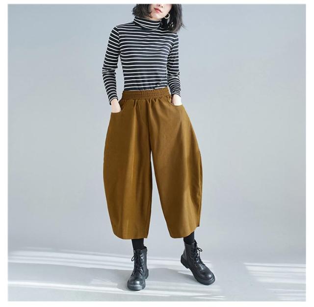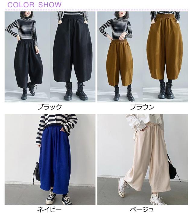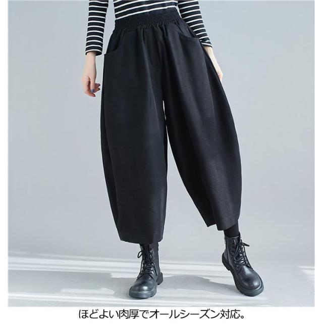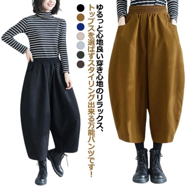 レディース サルエルパンツ バルーンパンツ 秋冬 ワイドパンツ ロング パンツ ボトムス ウエストゴム ポケット付き 美脚 春 秋 冬 ゆったり かわいい 9分丈 大きいサイズ 大人 カジュアル ズボン 無地 着痩せ 40代 30代 50代