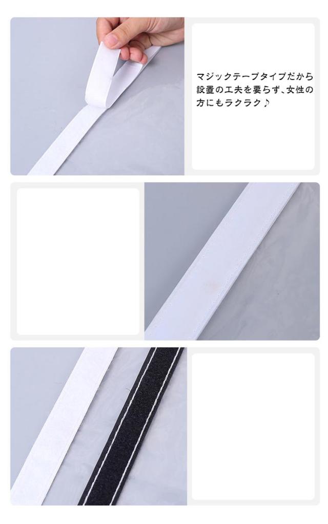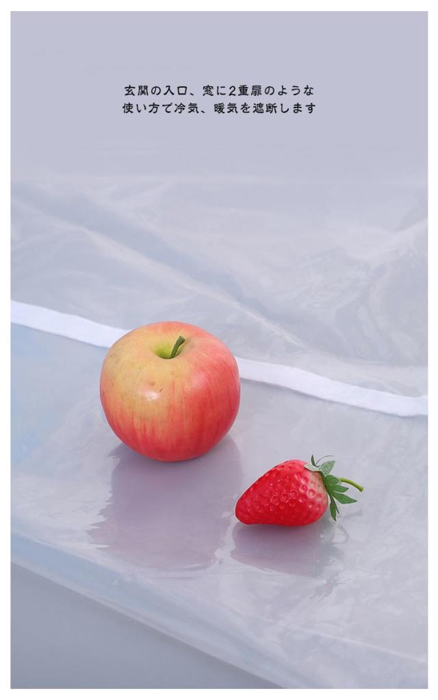 | 上質なしなやかさと丈夫さで、PVC防炎ビニールカーテン。 お部屋の間仕切りや、玄関・階段からの熱風や冷気を遮断し冷暖房効率が上がり省エネ・節電にも最適です。 また、ベランダやガレージなどの雨よけ・風よけ・猫や鳥の侵入防止にもなります。急な雨にも洗濯ものなどを守れます。 透明のビニールは透明度が高いので視界の妨げにもなりません。採光性がよいので、部屋の明るさを保ちます。 玄関の入口、窓に2重扉のような使い方で冷気、暖気を遮断します。 質の高い素材を採用するので、耐久性が優れており長年にわたって使用できます。 マジックテープタイプだから、設置の工夫を要らず、女性の方にもラクラク♪ | |