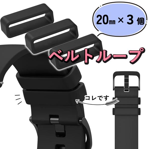腕時計 ベルトループ 20mm 3個入 ウレタンバンド 遊環 ラバー バンド シリコン 時計ゴム 修理 補修 ブラック (管理S) 送料無料