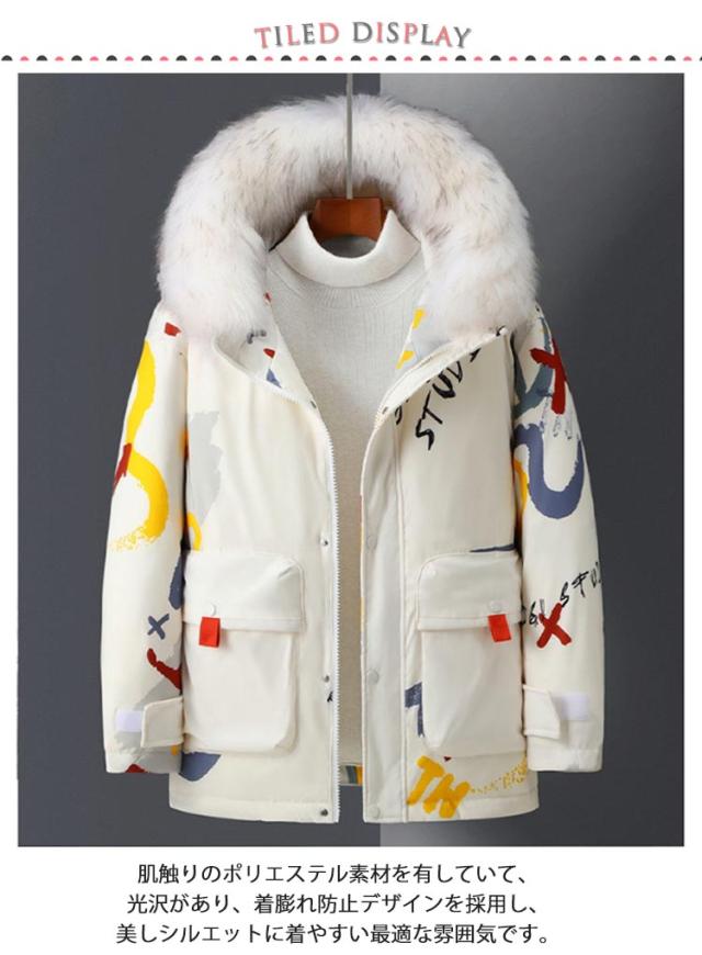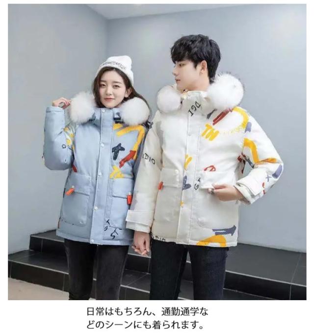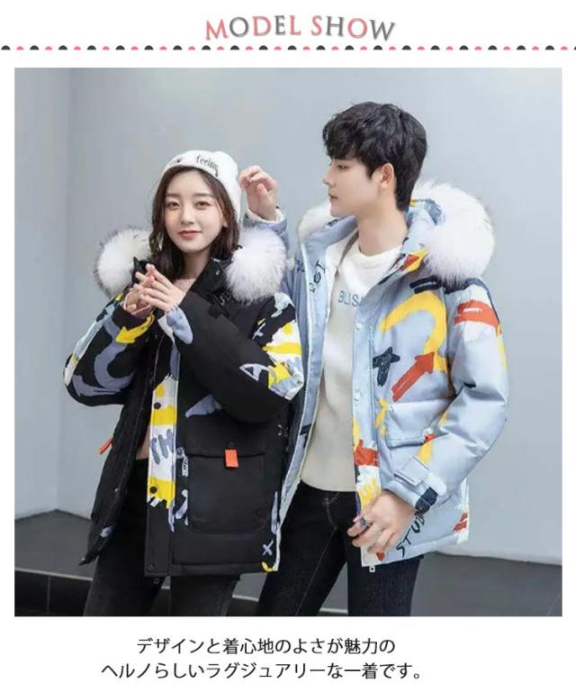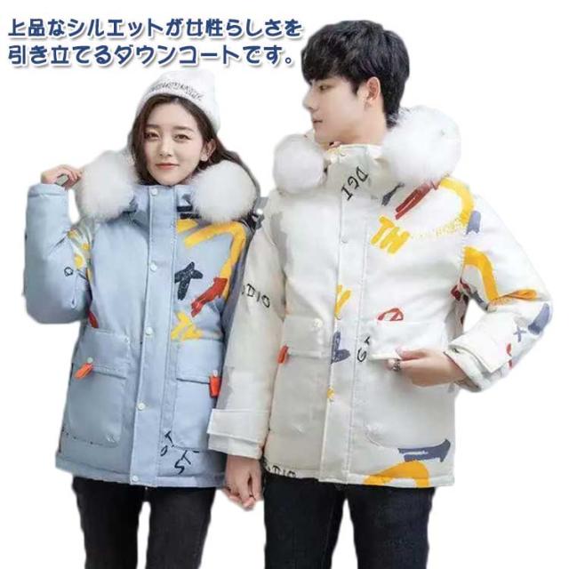 送料無料 メンズ フード XL ペア 中綿コート フェイクファー コート 秋冬 男性 防寒 保暖 アウター 冬服 ショート 軽量 保温 S ダウンジャケット 可愛い カップル 大きいサイズ カジュアル 通勤 通学 総柄 M L ダウンコート