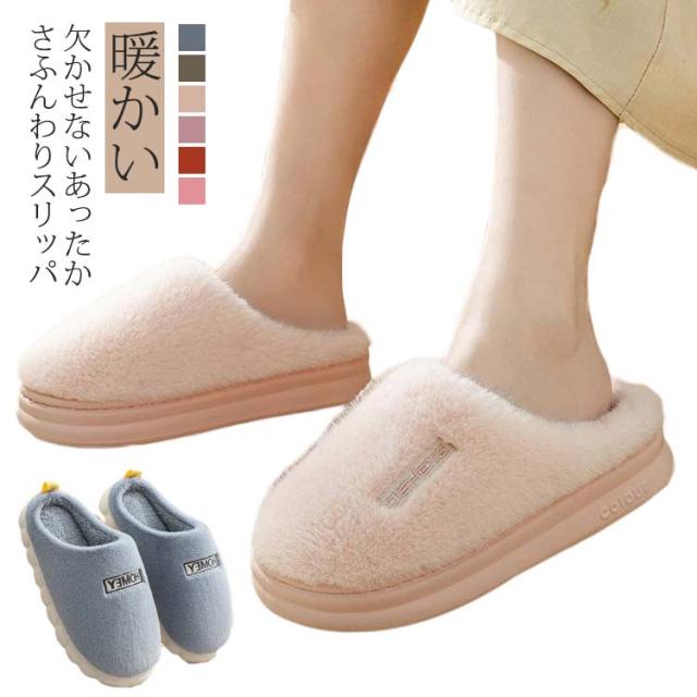 スリッパ 暖かい 冬用 レディース メンズ ルームシューズ ルームスリッパ 室内履き 洗える ゴム アウトソール 滑り止め ふわふわ もこもこ フェイクファー あったか おしゃれ 室内 部屋履き 家 オフィス シンプル 無地 来客 冷え対策 カジュアル 冬用 送料無料