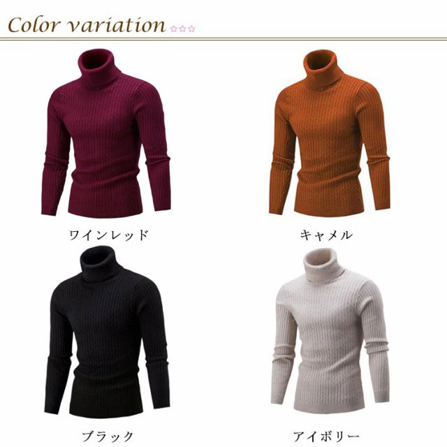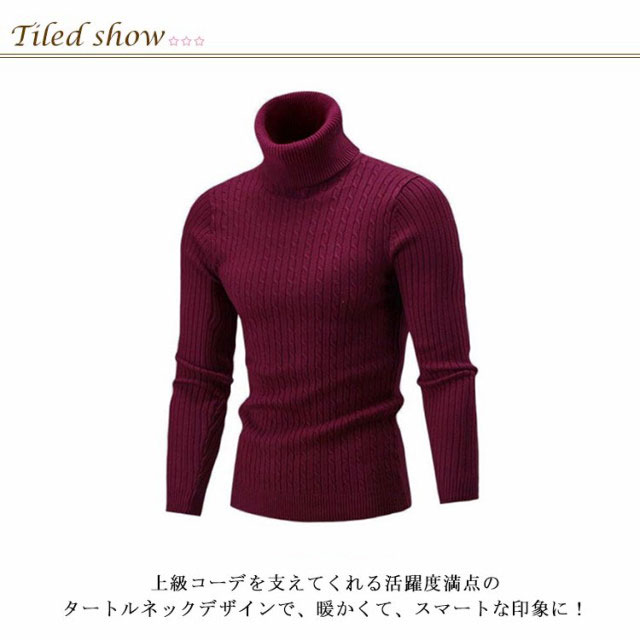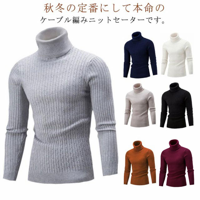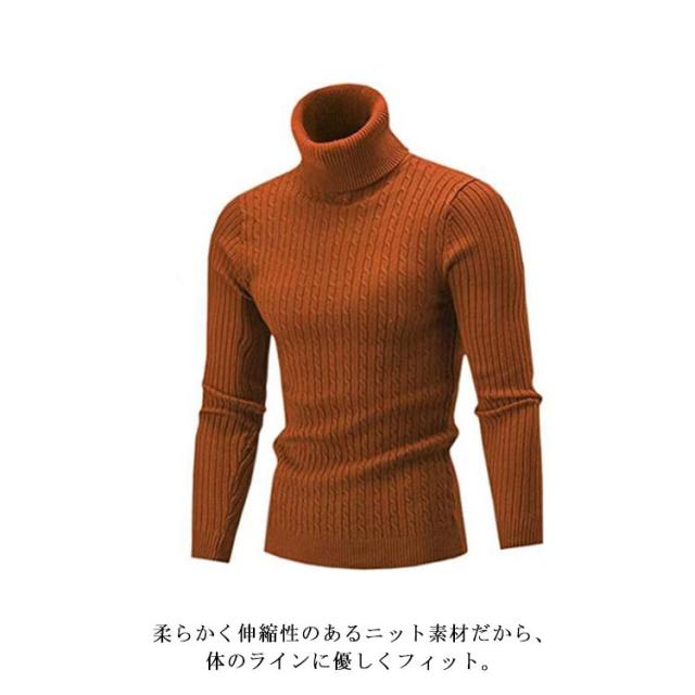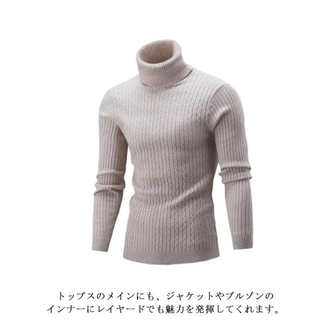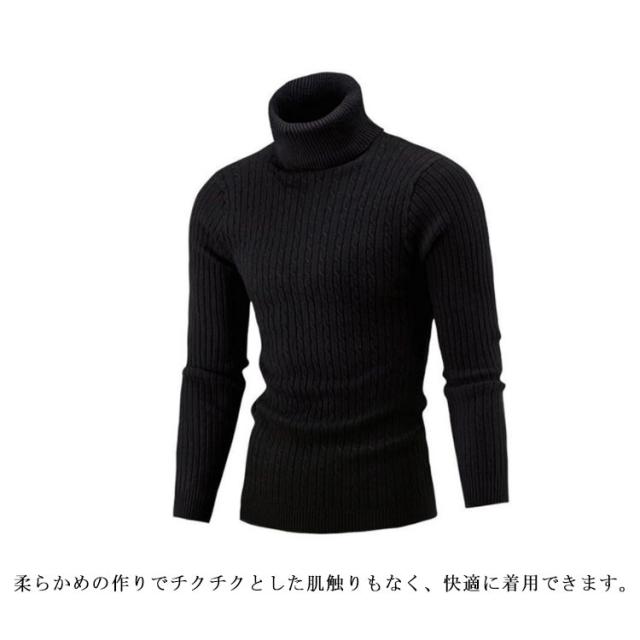 ケーブル編み メンズ フィット シンプル ニット メンズセーター ケーブルニット トップス 薄手 ニット ハイネック タートルネック ニットセーター セーター 細身 秋 冬 インナー ニット スリム 暖かい 防寒 秋服 冬服 無地 メンズニット