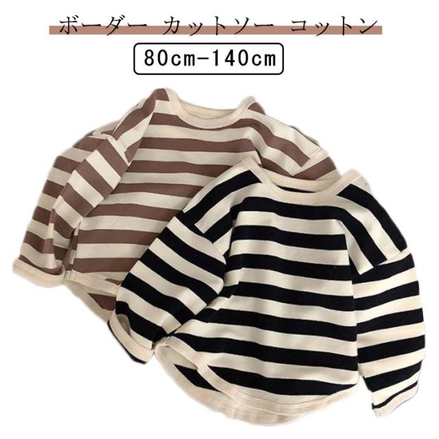 ボーダー カットソー コットン 綿 キッズ 長袖 Tシャツ 男の子 女の子 子供服 ベビー服 太ボーダー おしゃれ オシャレ 可愛い かわいい 80cm 90cm 100cm 110cm 120cm 130cm 140cm 送料無料