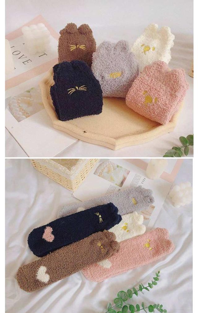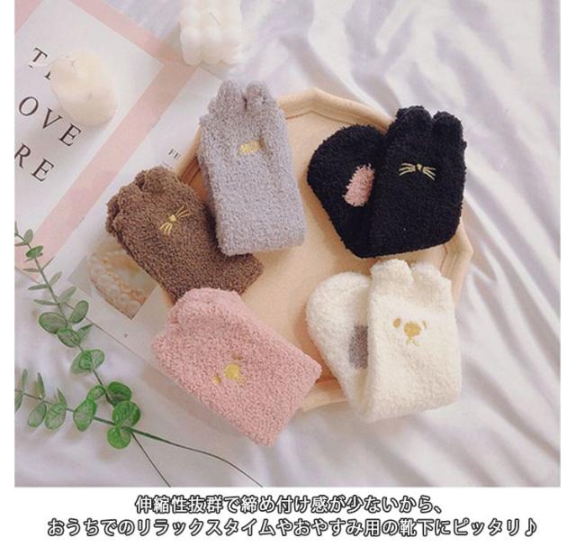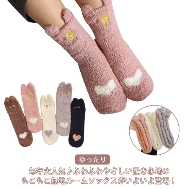 ルームソックス マシュマロタッチ もこもこ靴下 もこもこ かわいい もこもこ 5足セット クマ ソックス 靴下 ネコ ルームウェア 厚手 ゆったり あったか パステル 保温 冬 防寒 プチギフト プレゼント 誕生日 送料無料