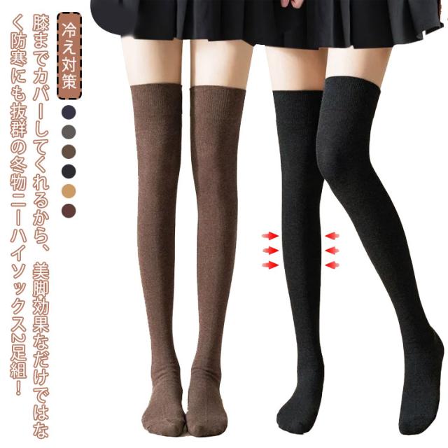 厚手 ニーハイソックス 靴下 厚手ソックス 秋 冬 無地 ソックス オーバーニー レディース 普段着 リブソックス スクールソックス ストレッチ 送料無料 オーバーニーソックス 綿混 お洒落 美脚 ストッキング 2足組