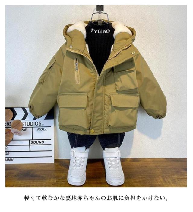 子供コート モッズコート キッズ 裏ボア コート ミリタリージャケット 子供 秋冬 男の子 女の子 中綿コート フード付き 防風 ボアジャケット ミディアム 防寒着