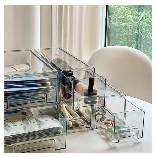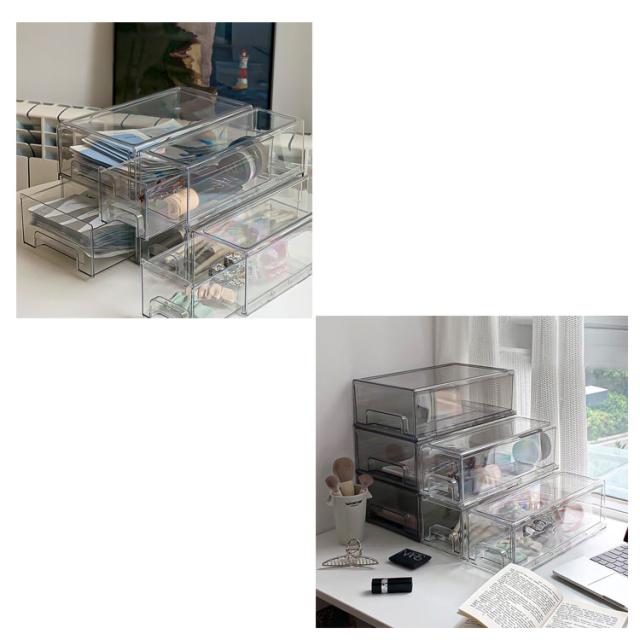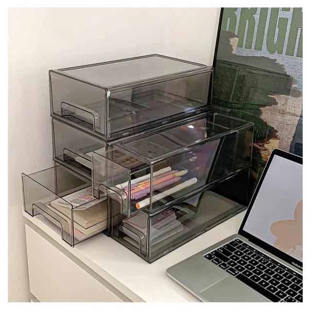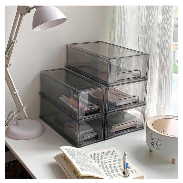 収納ボックス 引き出し 卓上収納ケース L シンプル プラスチック 書類ケース 透明 文房具収納 化粧品 文書 小物ケース 小物収納 デスク収納 机上用 机上ラック おしゃれ M 事務用品