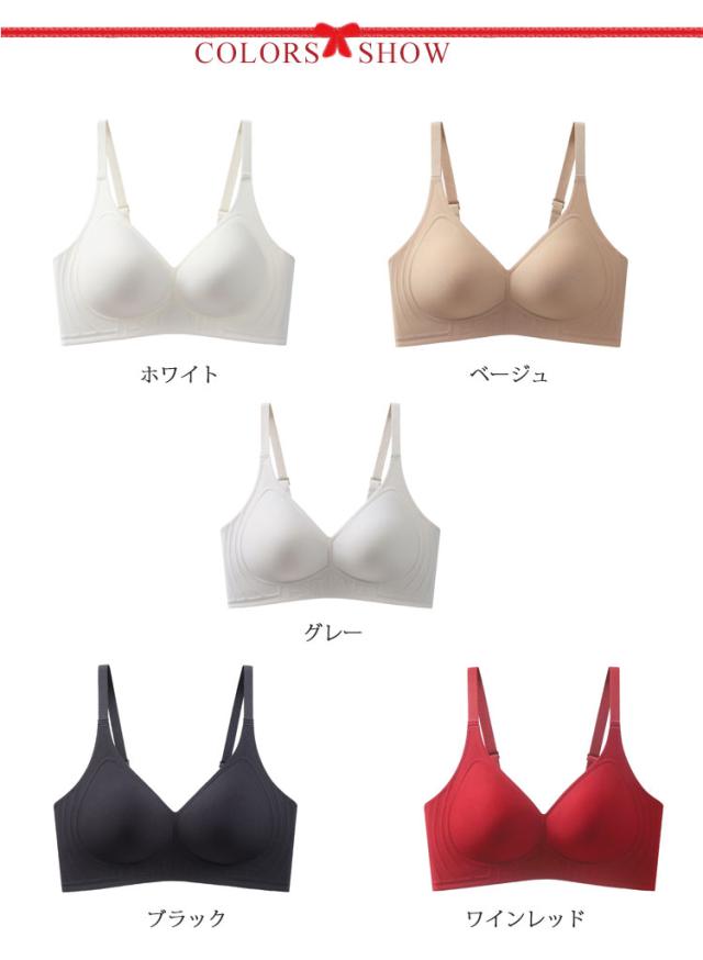 | ノンワイヤーでストレスフリーブラジャーです。 サイドに厚みのある立体カップでバストをグイッと寄せてふっくらバストに。 カップ表面は装飾なしのシームレス仕様で、薄手の洋服でもラインが響かずおしゃれを楽しめます。 伸縮性のある素材なので動いてもしっかりフィット。 軽い付け心地なのでナイトブラにもオススメ◎ | |