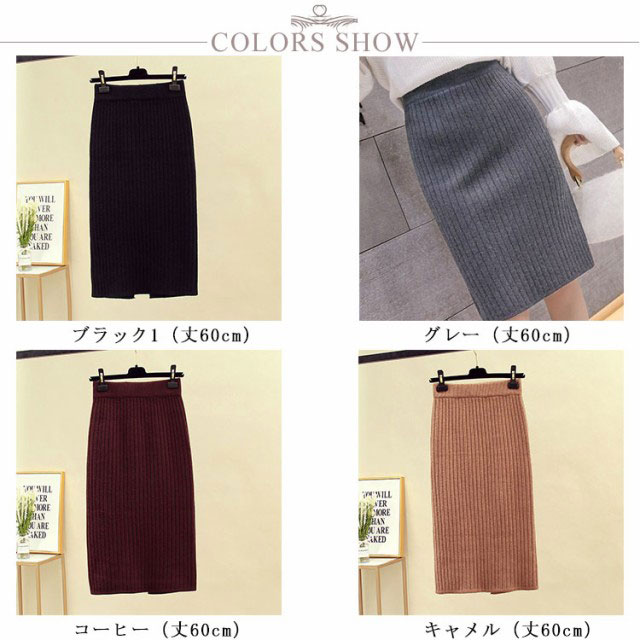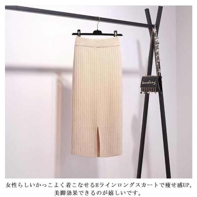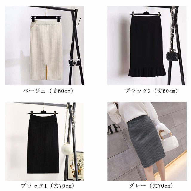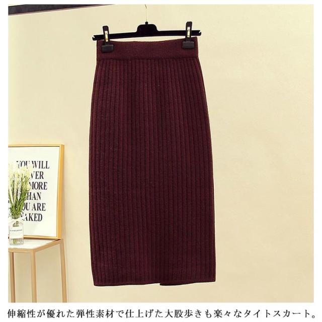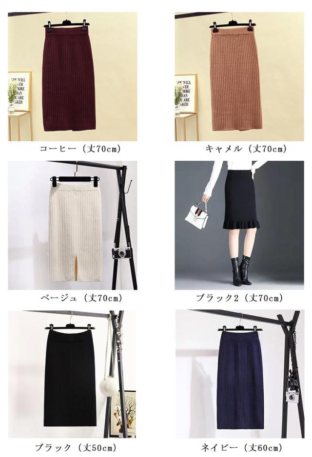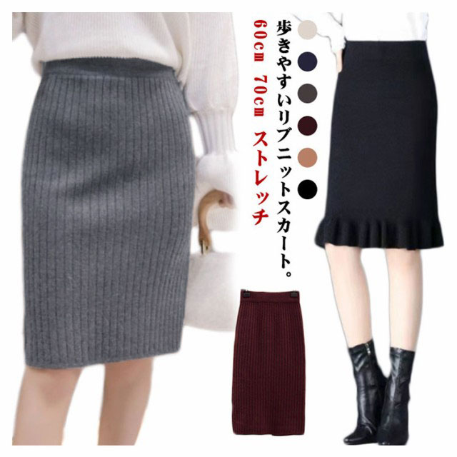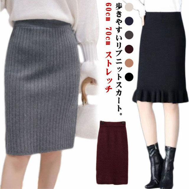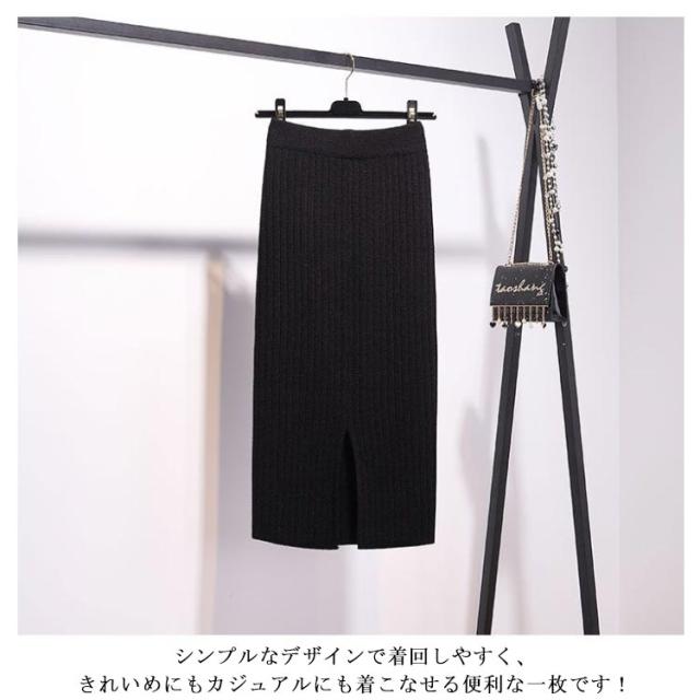 タイトスカート リブニットスカート レディース ニットスカート スカート 60cm 秋 スリット リブ 冬 ストレッチ ロングスカート ニット 70cm レディース ニット ミモレ丈スカート ボトムス ひざ丈 ロング丈 オフィス カジュアル