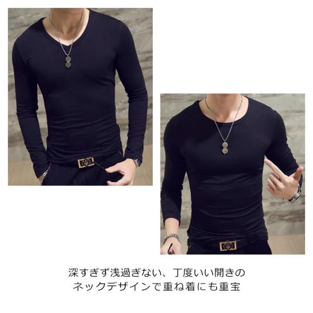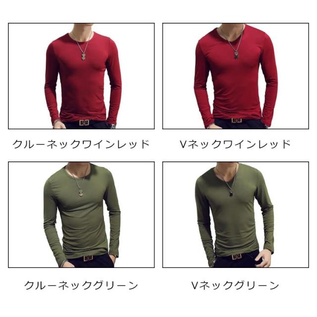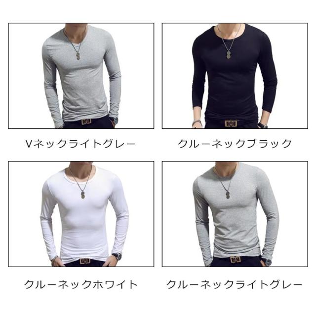 細身 インナーシャツ 無地 丸首 Vネック 長袖 Uネック メンズ 大きいサイズ スリム 長袖tシャツ 肌着 秋冬 春 重ね着 インナー ヒートインナー アンダーシャツ インナーシャツ シンプル ストレッチ ルームウェア 薄手 スポーツウェア ギフト プレゼント 送料無料