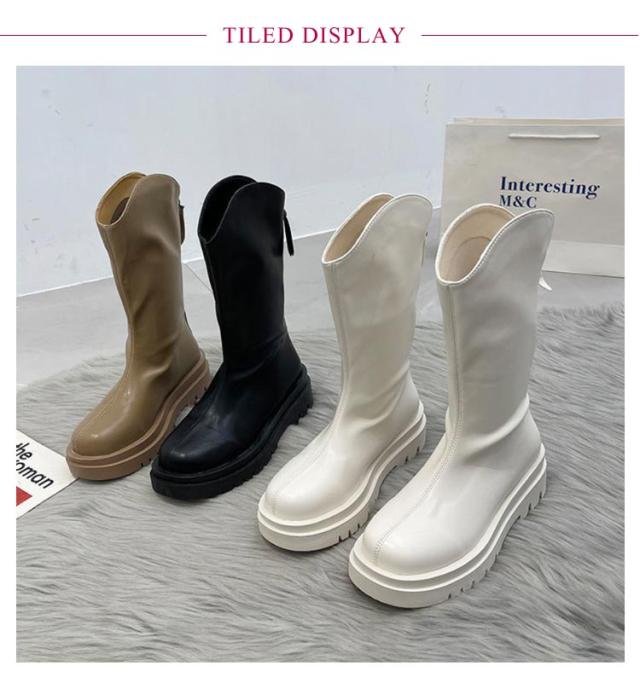 ロングブーツ ジョッキー 厚底 ストレッチ 疲れない レディース 歩きやすい PUレザー ブーツ プラットフォーム ロングブーツ バックジップ 滑りにくい やわらか 柔らかい 軽量 ラウンドトゥ 大きいサイズ 防寒 トラックソール