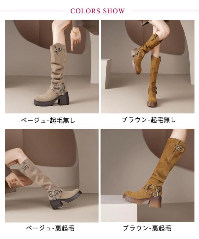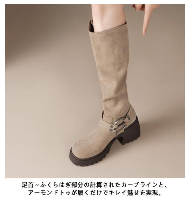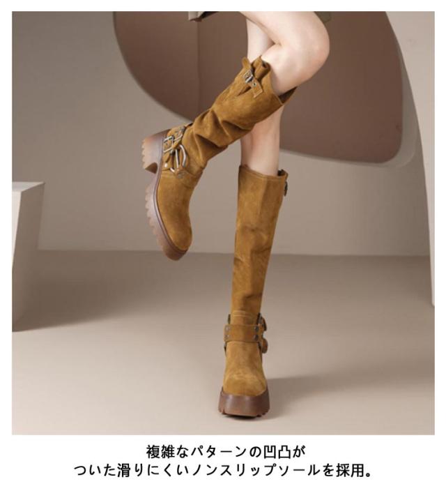 レディース ロングブーツ ロング丈 太ヒール くしゅくしゅ くしゅくしゅブーツ ロングブーツ 太ヒール バックルベルト PUレザー 合皮 裏起毛 ベルトデザイン ふくらはぎ ゆったり ブーツ 大きい 筒周り エンジニアブーツ