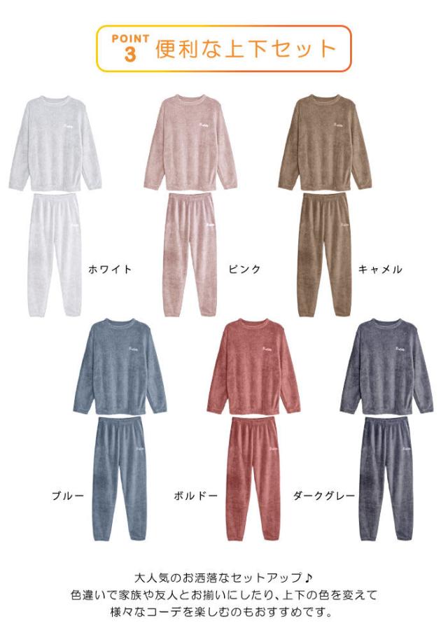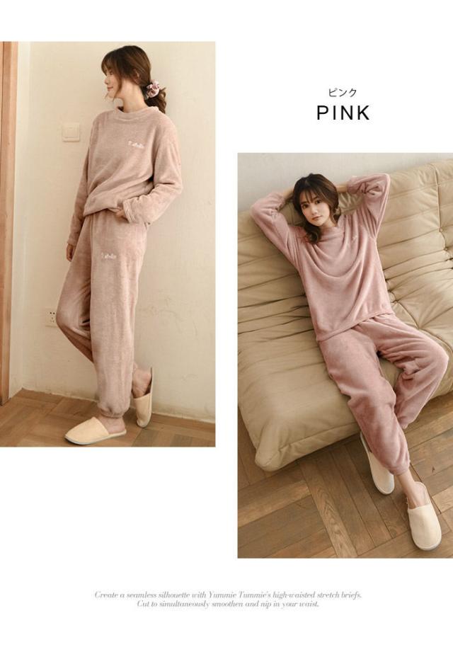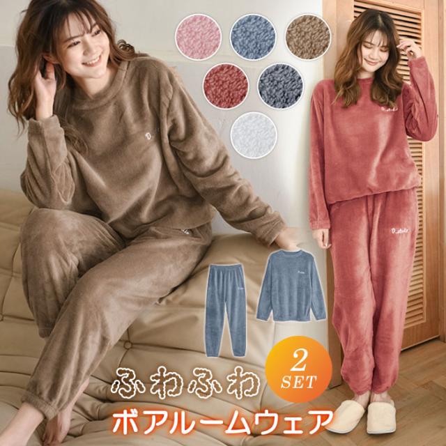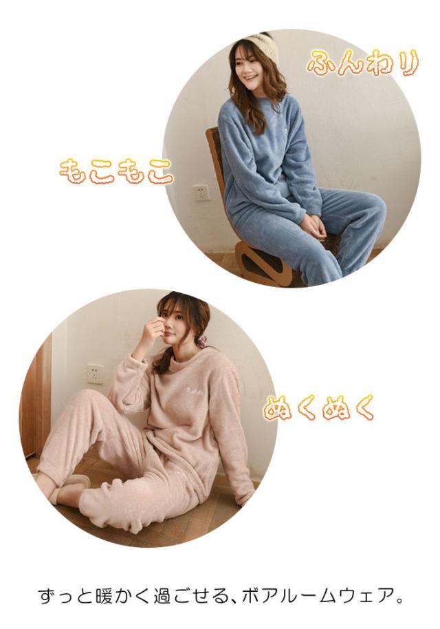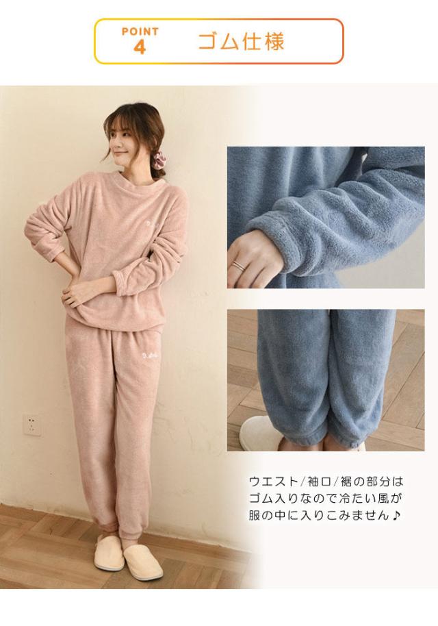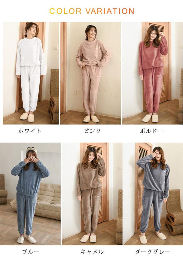ルームウェア レディース 秋 冬 秋冬 上下セット もこもこ パジャマ フリース 無地 防寒 寒さ対策 部屋着 パジャマ ナイトウェア ルームパンツ トップス ボトム