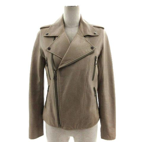 【中古】アーバンリサーチ URBAN RESEARCH ライダースジャケット ダブル 羊皮 ラムレザー グレージュ F レディース