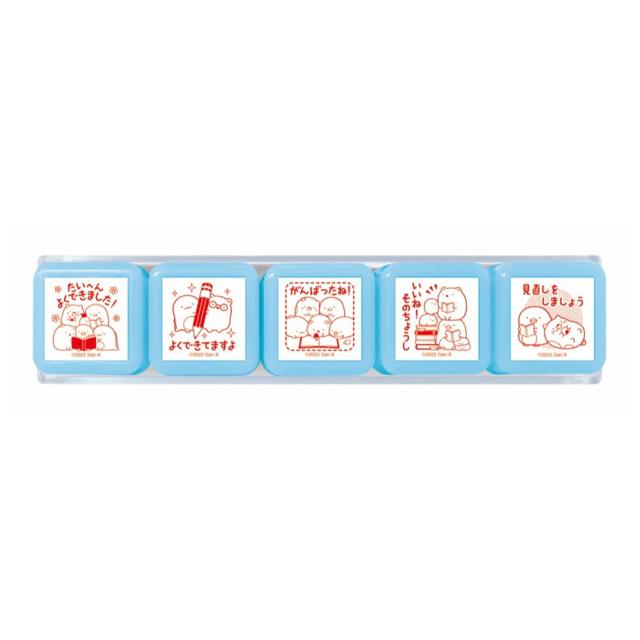 ◆商品名:ビバリー すみっコぐらし スタンプ 浸透印 せんせいスタンプ SE5-007<br>【スタンプ台不要の浸透印が5個も入ったお得なセット】すみっコぐらしのメッセージ付きのスタンプ5個セット約1000回捺印可能な浸透印タイプ。インクパッド不要で、手軽にポンポンと押せます。インクのにじみやかすれが少なく、鮮明に捺印できます。学校、幼稚園や塾の先生、お子様がいらっしゃる方にオススメ。こどものテストや帳など、たくさん使えます。専用ケースつき。持ち運びがラクラクで、バラバラになってなくしてしまう心配も不要です。補充インク(別
