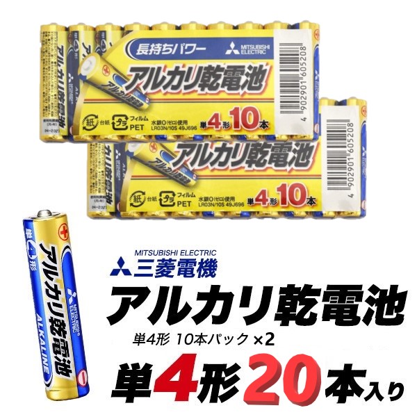 20本パック 三菱電機 アルカリ乾電池 単4形(AAA) 備蓄 防災用にも 電池 乾電池 お得 ポイント消化