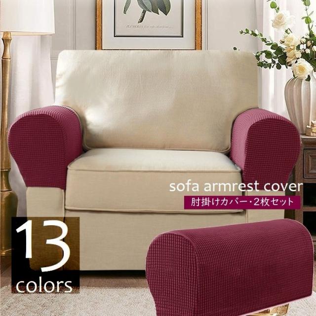 肘掛けカバー ソファ アームレストカバー 2枚セット ワッフル地 ひじ掛け用カバー ストレッチ 無地 伸縮性あり 汚れ対策 擦れ