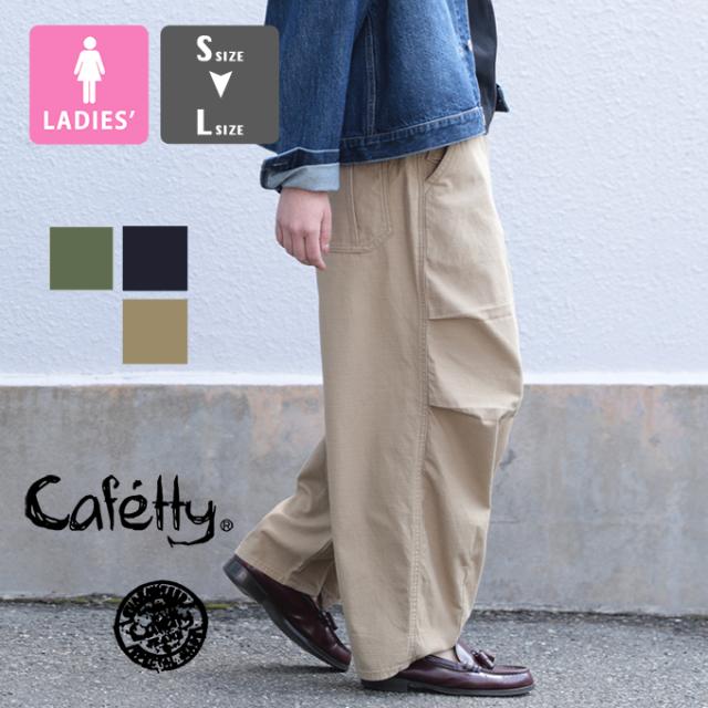 「 Cafetty カフェッティ 」 アーミー バルーン パンツ CF0517 / カフェッティ パンツ アーミーパンツ ワイドパンツ バルーンパンツ ウエストゴム リラックス 楽ちん ゆったり 股上深め バックサテン カジュアル ナチュラル 2023AW ※