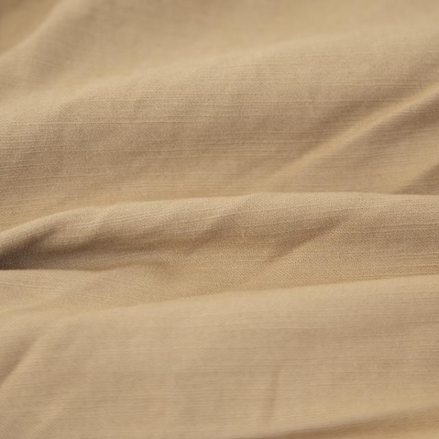 程よいボリューム感と、あえてドライな質感に仕上げたムラ糸バックサテン素材。