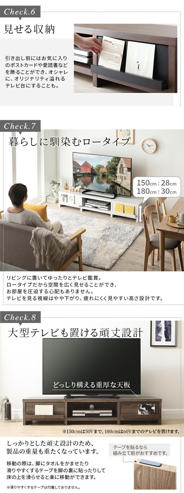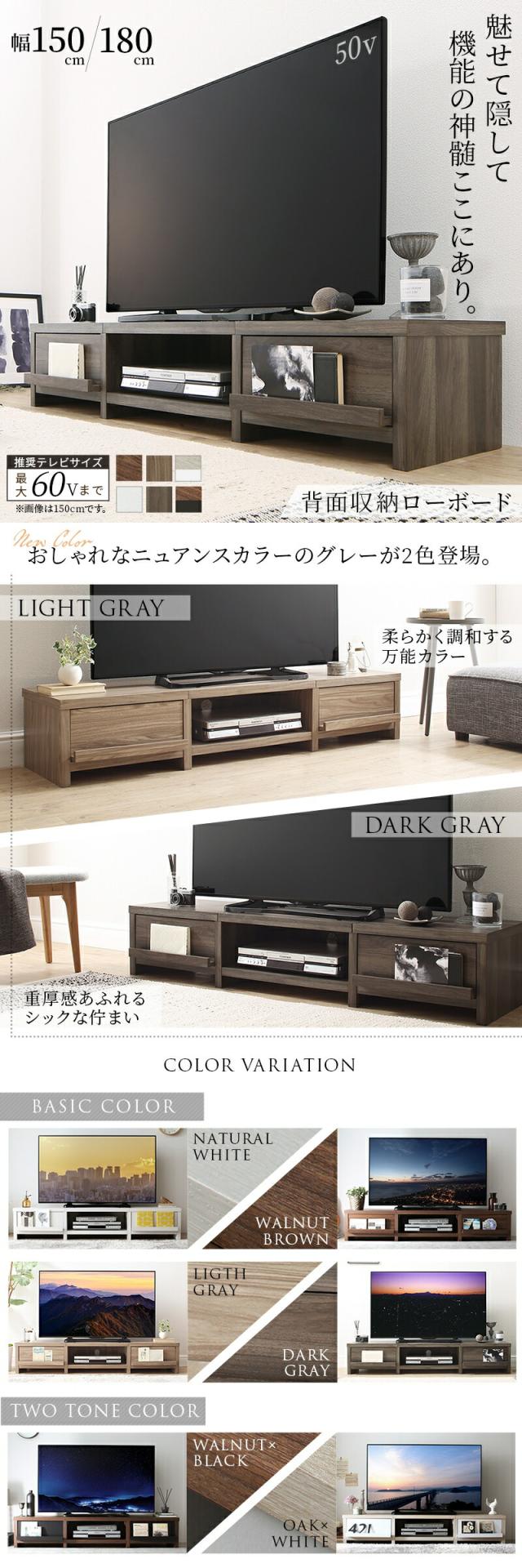 背面収納付き ローボード テレビ台 テレビボード 〔ts120533〕 幅150 高さ28 ウォルナットブラウン 【北海道・沖縄・離島配送不可】