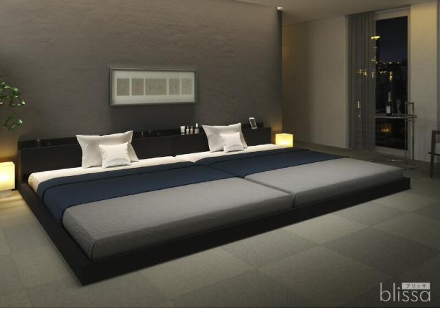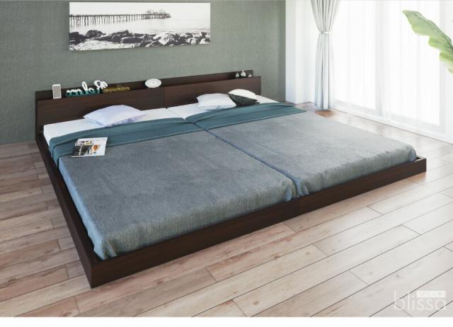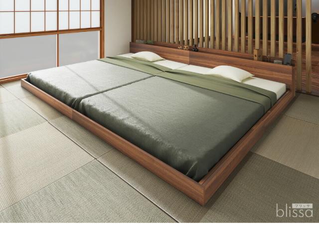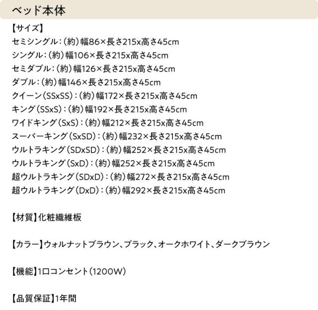 分割しても使える 棚・コンセント付き 大型連結ベッド 〔ブリッサ〕 〔スタンダードボンネルコイルマットレス付き〕 ワイドK200 〔フレーム色〕ウォルナットブラウン 〔マットレス色〕ホワイト 【北海道・沖縄・離島配送不可】