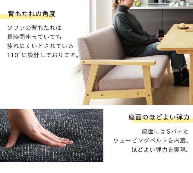 北欧デザイン 木肘ソファダイニングシリーズ 〔ハーパー2〕 4点セット(テーブル120cm+2Pソファ1脚+1Pソファ2脚) 〔2Pソファ座面色〕スレートグレー 〔1Pソファ座面色〕スレートグレー 【北海道・沖縄・離島配送不可】