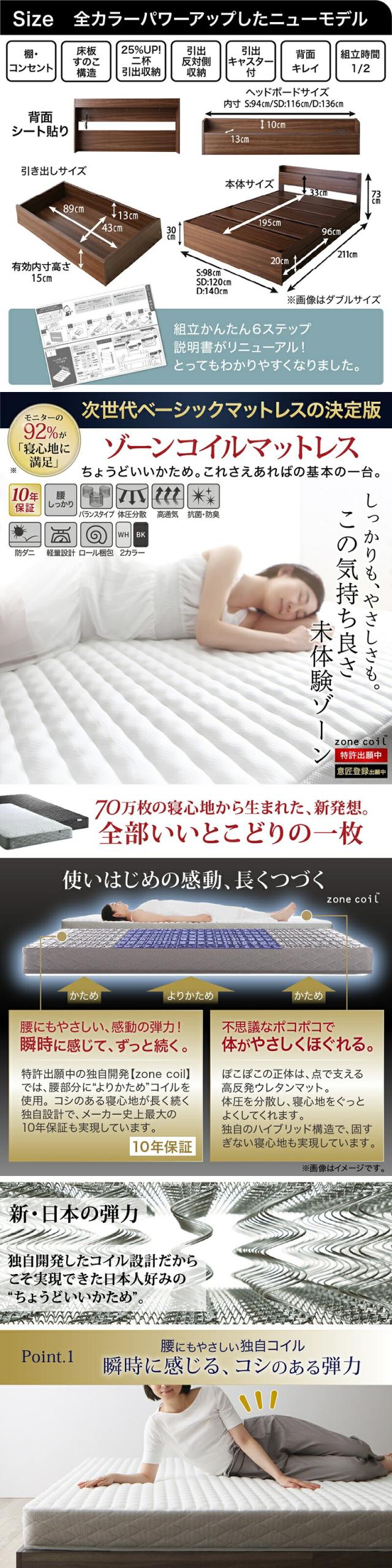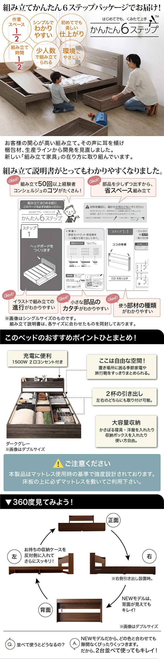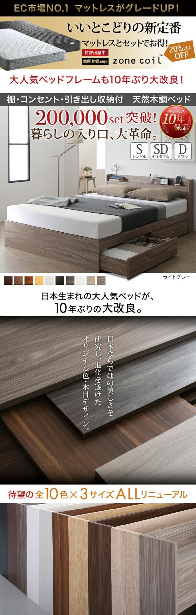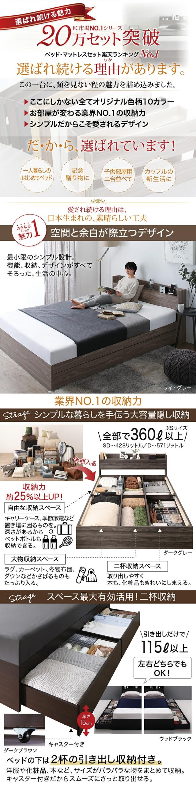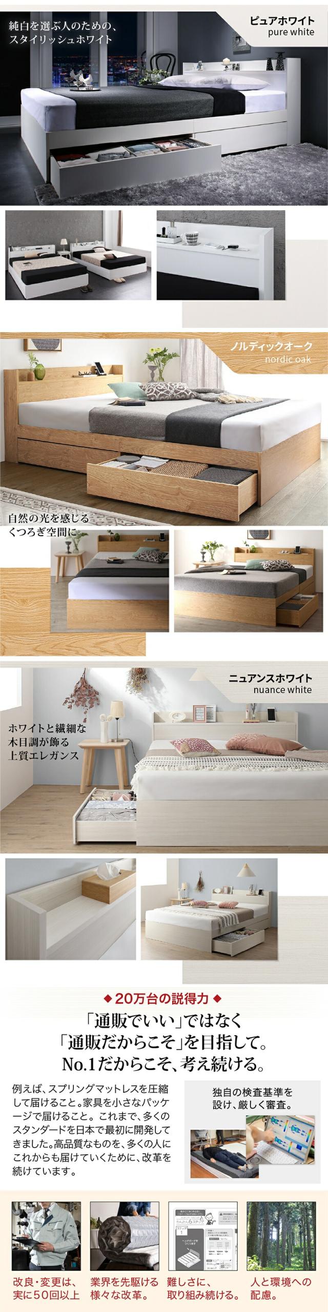 棚・コンセント付き 引き出し収納ベッド 〔エヴァーX〕 〔ゾーンコイルマットレス付き〕 シングル 〔フレーム色〕ライトグレー 〔マットレス色〕ホワイト 【北海道・沖縄・離島配送不可】