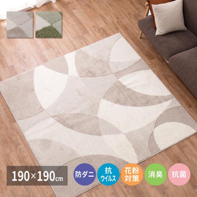 北欧柄の国産高機能ラグ 【ジャスト】 190×190cm ベージュ