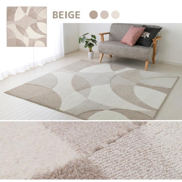 北欧柄の国産高機能ラグ 〔ジャスト〕 190×190cm ベージュ 【北海道・沖縄・離島配送不可】